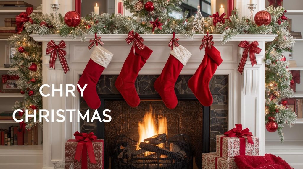 Stockings are the centerpiece of any Christmas fireplace décor. Choose ones in rich reds and crisp whites to match a modern farmhouse palette. Hanging them evenly across the mantle ensures visual balance.